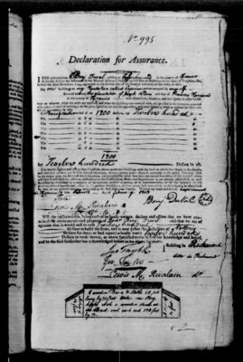 Fire insurance policy from the Mutual Assurance Society of Virginia (MAS) scanned from microfilm. MAS began issuing policies in 1796 and UMW holds microfilm copies of policies created from 1796 to 1867. The Library of Virginia holds the original polices. Computer-generated PDF transcripts are available for download below, listed under Additional Files.