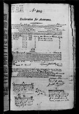 Fire insurance policy from the Mutual Assurance Society of Virginia (MAS) scanned from microfilm. MAS began issuing policies in 1796 and UMW holds microfilm copies of policies created from 1796 to 1867. The Library of Virginia holds the original polices. Computer-generated PDF transcripts are available for download below, listed under Additional Files.