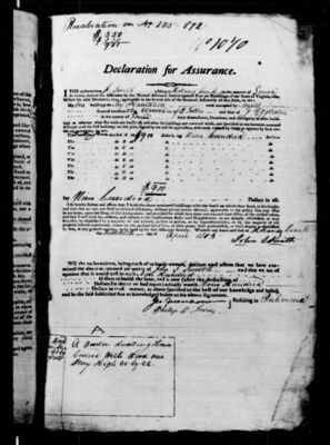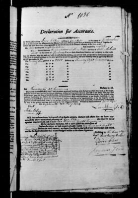 This sub-collection contains insurance policies from volume 18 of the Mutual Assurance Society Policies digital collection. Each item includes a JPEG scanned from microfilm and an automatically generated transcript. To read more about the transcript creation process, visit our transcript documentation. To locate a specific policy based on criteria like policyholder name, address, structure type, etc., we recommend using the UMW Center for Historic Preservation's electronic index. The index results will provide the reel and volume that contain a specific policy.