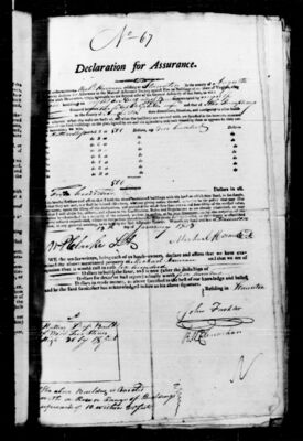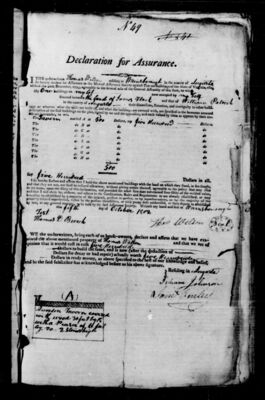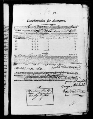 This sub-collection contains insurance policies from volume 20 of the Mutual Assurance Society Policies digital collection. Each item includes a JPEG scanned from microfilm and an automatically generated transcript. To read more about the transcript creation process, visit our transcript documentation. To locate a specific policy based on criteria like policyholder name, address, structure type, etc., we recommend using the UMW Center for Historic Preservation's electronic index. The index results will provide the reel and volume that contain a specific policy.