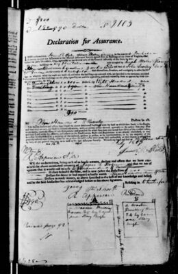 Fire insurance policy from the Mutual Assurance Society of Virginia (MAS) scanned from microfilm. MAS began issuing policies in 1796 and UMW holds microfilm copies of policies created from 1796 to 1867. The Library of Virginia holds the original polices. Computer-generated PDF transcripts are available for download below, listed under Additional Files.