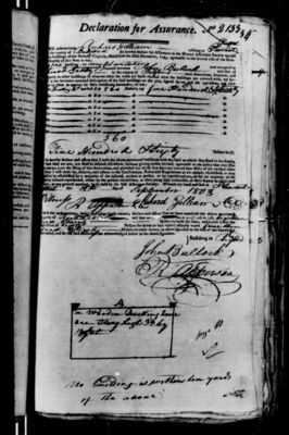 Fire insurance policy from the Mutual Assurance Society of Virginia (MAS) scanned from microfilm. MAS began issuing policies in 1796 and UMW holds microfilm copies of policies created from 1796 to 1867. The Library of Virginia holds the original polices. Computer-generated PDF transcripts are available for download below, listed under Additional Files.