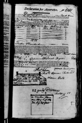 Fire insurance policy from the Mutual Assurance Society of Virginia (MAS) scanned from microfilm. MAS began issuing policies in 1796 and UMW holds microfilm copies of policies created from 1796 to 1867. The Library of Virginia holds the original polices. Computer-generated PDF transcripts are available for download below, listed under Additional Files.