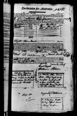 Fire insurance policy from the Mutual Assurance Society of Virginia (MAS) scanned from microfilm. MAS began issuing policies in 1796 and UMW holds microfilm copies of policies created from 1796 to 1867. The Library of Virginia holds the original polices. Computer-generated PDF transcripts are available for download below, listed under Additional Files.