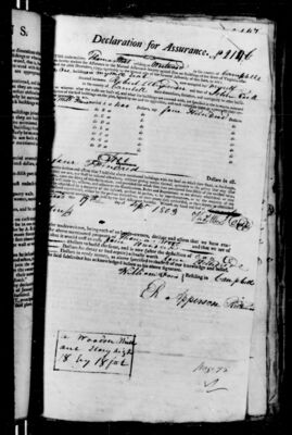 Fire insurance policy from the Mutual Assurance Society of Virginia (MAS) scanned from microfilm. MAS began issuing policies in 1796 and UMW holds microfilm copies of policies created from 1796 to 1867. The Library of Virginia holds the original polices. Computer-generated PDF transcripts are available for download below, listed under Additional Files.