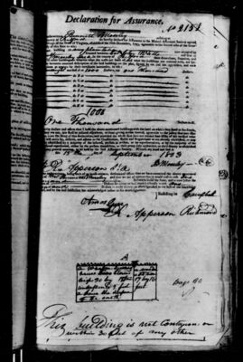 Fire insurance policy from the Mutual Assurance Society of Virginia (MAS) scanned from microfilm. MAS began issuing policies in 1796 and UMW holds microfilm copies of policies created from 1796 to 1867. The Library of Virginia holds the original polices. Computer-generated PDF transcripts are available for download below, listed under Additional Files.