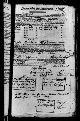 I do hereby declare and affirm that the above mentioned buildings are not, nor shall be insured elsewhere, without giving notice thereof, agreeably to the policy that may issue in my name, upon the filing of this declaration, and provided the whole sum do not exceed four-fifths of the verified value, and that I will abide by, observe, and adhere to the Constitution, Rules, and Regulations as are already established, or may hereafter be established by a majority of the insured, present in person, or by representatives, at a general Meeting to be agreed upon for the said Assurance Society. Witness my hand and seal at [signing location] the [day number spelled out] day of [month] 1803