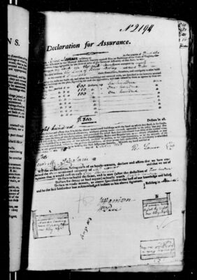 I do hereby declare and affirm that the above mentioned buildings are not, nor shall be insured elsewhere, without giving notice thereof, agreeably to the policy that may issue in my name, upon the filing of this declaration, and provided the whole sum do not exceed four-fifths of the verified value, and that I will abide by, observe, and adhere to the Constitution, Rules, and Regulations as are already established, or may hereafter be established by a majority of the insured, present in person, or by representatives, at a general Meeting to be agreed upon for the said Assurance Society. Witness my hand and seal at [signing location] the [day number spelled out] day of [month] 1803