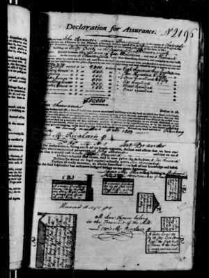 I do hereby declare and affirm that the above mentioned buildings are not, nor shall be insured elsewhere, without giving notice thereof, agreeably to the policy that may issue in my name, upon the filing of this declaration, and provided the whole sum do not exceed four-fifths of the verified value, and that I will abide by, observe, and adhere to the Constitution, Rules, and Regulations as are already established, or may hereafter be established by a majority of the insured, present in person, or by representatives, at a general Meeting to be agreed upon for the said Assurance Society. Witness my hand and seal at [signing location] the [day number spelled out] day of [month] 1803