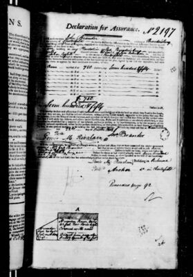 Fire insurance policy from the Mutual Assurance Society of Virginia (MAS) scanned from microfilm. MAS began issuing policies in 1796 and UMW holds microfilm copies of policies created from 1796 to 1867. The Library of Virginia holds the original polices. Computer-generated PDF transcripts are available for download below, listed under Additional Files.