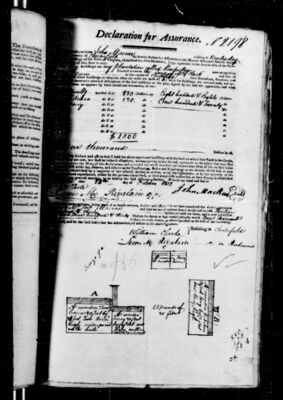 I do hereby declare and affirm that the above mentioned buildings are not, nor shall be insured elsewhere, without giving notice thereof, agreeably to the policy that may issue in my name, upon the filing of this declaration, and provided the whole sum do not exceed four-fifths of the verified value, and that I will abide by, observe, and adhere to the Constitution, Rules, and Regulations as are already established, or may hereafter be established by a majority of the insured, present in person, or by representatives, at a general Meeting to be agreed upon for the said Assurance Society. Witness my hand and seal at [signing location] the [day number spelled out] day of [month] 1803